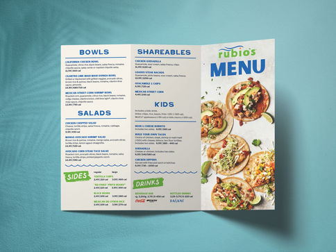 New 2024 Paper Menu for Rubio's Restaurants Innovation Kitchen offerings, incorporating an updated branding style to accompany the new products.